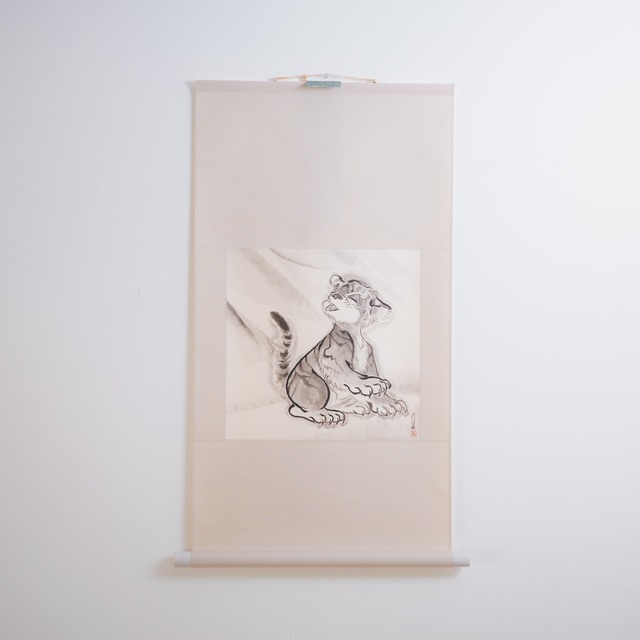 2026年制作 軸装なしサイズ550×260mm 素材 雁皮、墨、顔彩 ¥119,350-(tax in) ※こちらは3/22まで展示中となっております。発送は25日以降、順次発送いたします。 ------------------------- 作家プロフィール(文ヶ学調) 中西瑛理香|Erika Nakanishi 日本画の伝統技法を基盤に、自然や希少な動植物を描く画家。 繊細な線と大胆な余白によって、生命の静けさと内在する強度を浮かび上がらせる。 彼女の画面に広がる「間」は、単なる空白ではなく、観る者の思考と呼吸を引き込むための空間である。 虎という象徴的存在を通して、人と自然、畏怖と親密さ、伝統と現代のあいだを往還しながら制作を続けている。