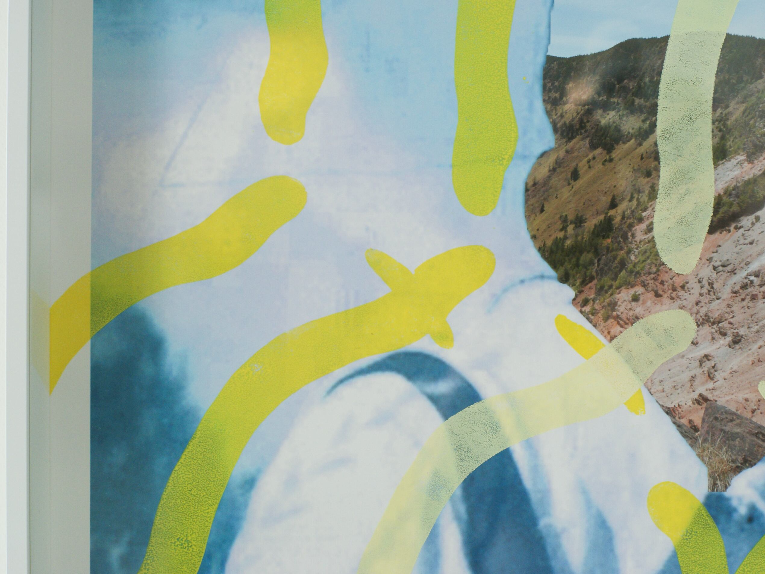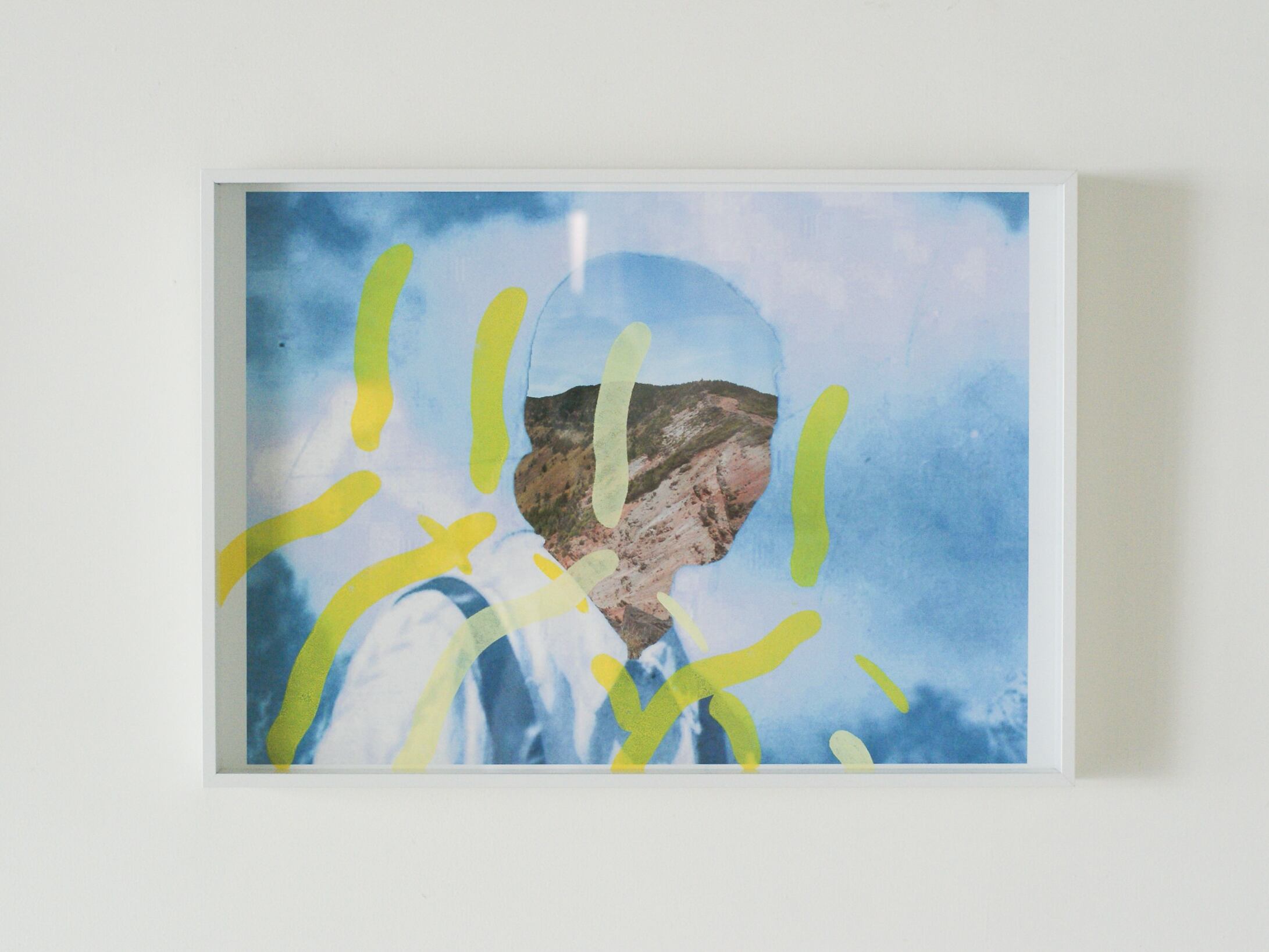 Since 2023, she has been working with vintage photographs depicting figures stripped of societal identifiers—what she calls “gravity-free portraits.” These are digitally combined with photographs she takes in the mountains, layered with woodblock prints representing “absent presences.” Her practice explores the ambiguity and relativity of life’s boundaries, and the fluctuation of time and being.
