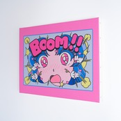 やわらかなパステルカラーと、どこか90年代アニメを思わせるタッチで、うさぎや女の子、日常のささやかな感情を描き出しています。かわいらしさのなかに、少しのユーモアやせつなさがひそんでいて、眺めるたびに違う物語が立ち上がるような一枚です。