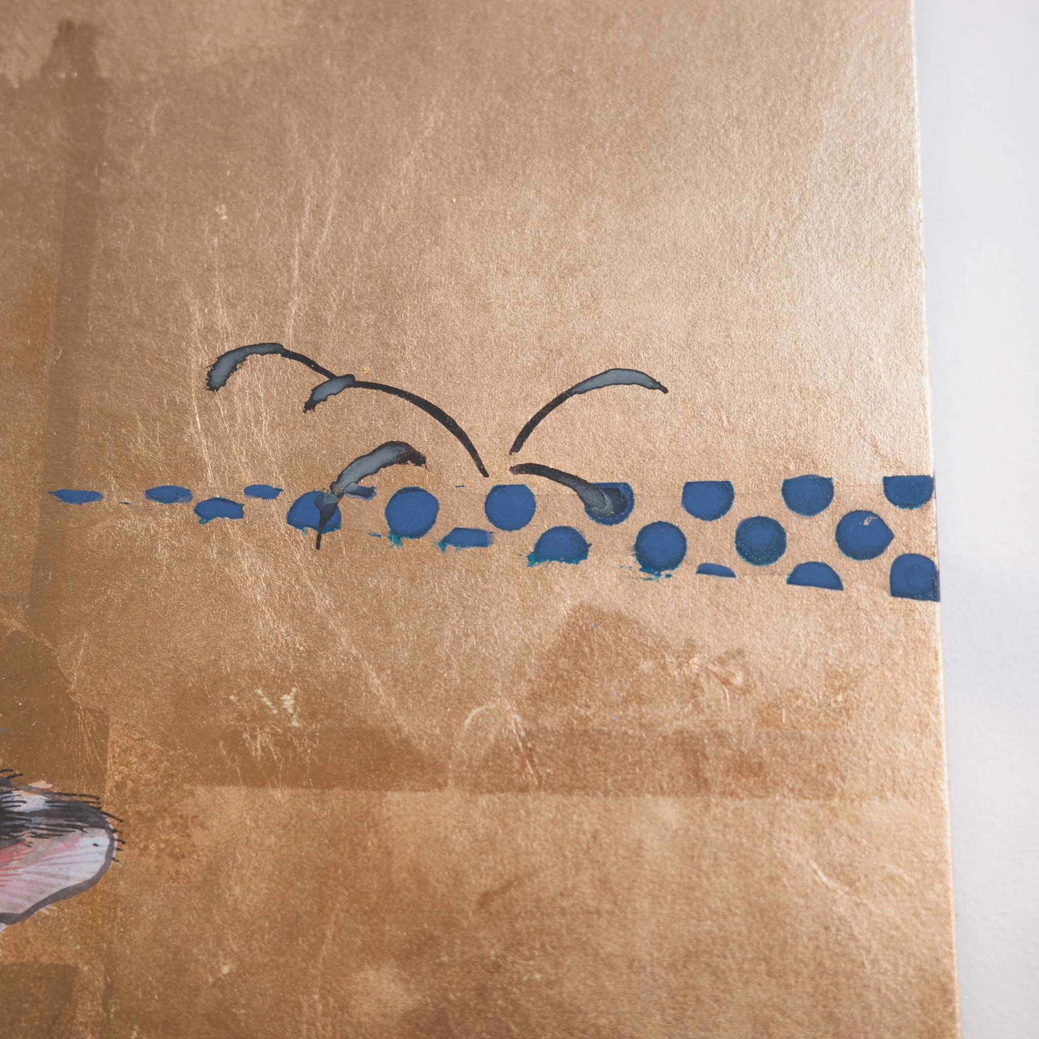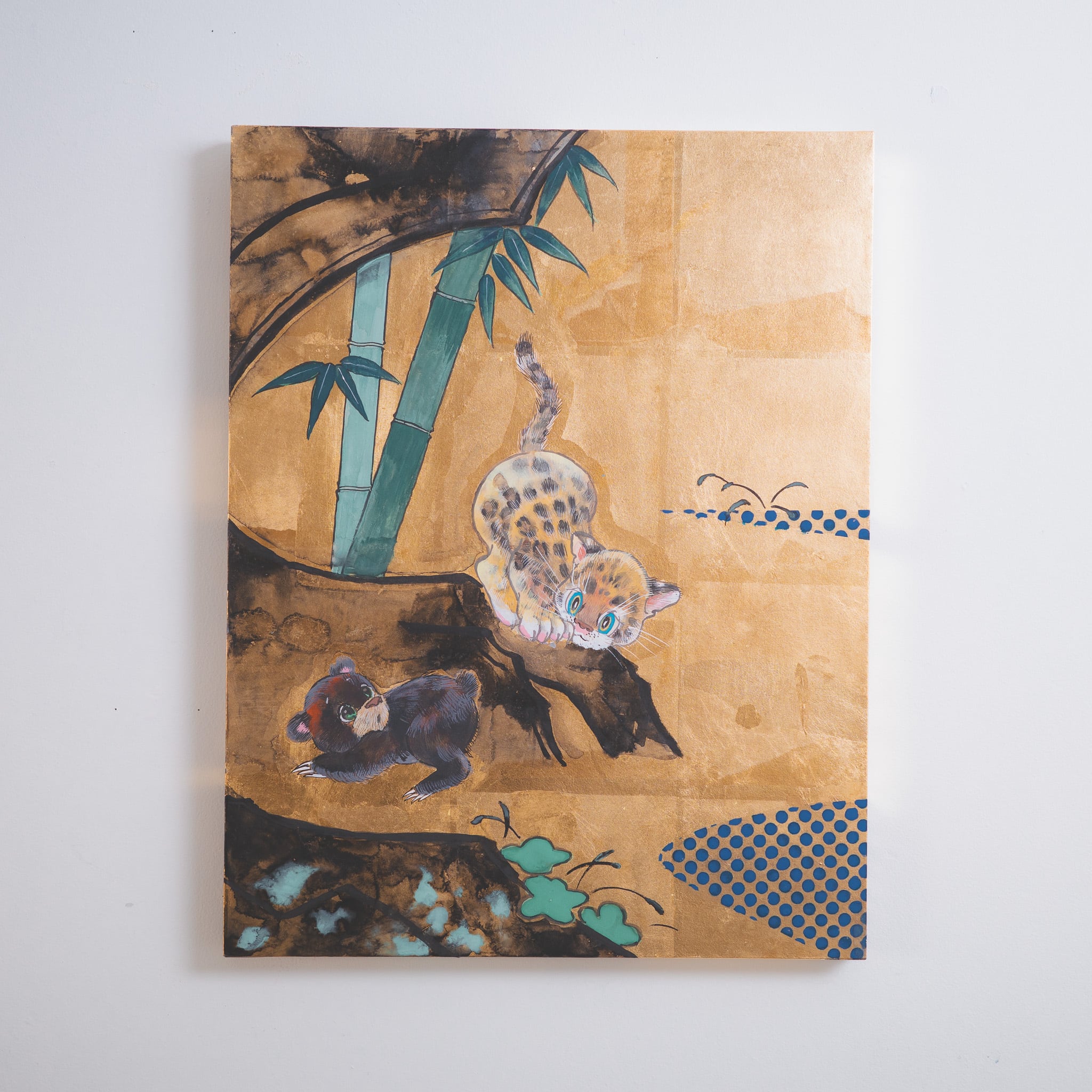 素材:鳥の子紙、洋金箔、墨、水干、岩絵具