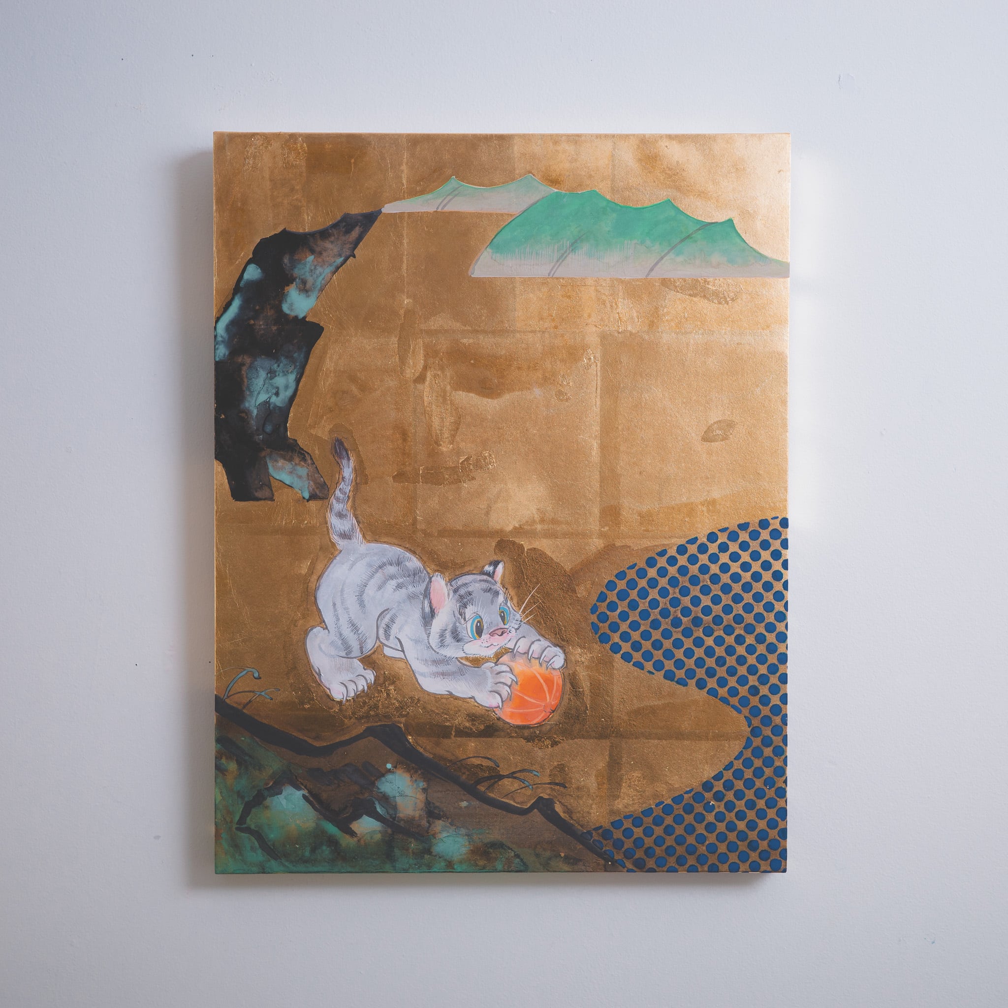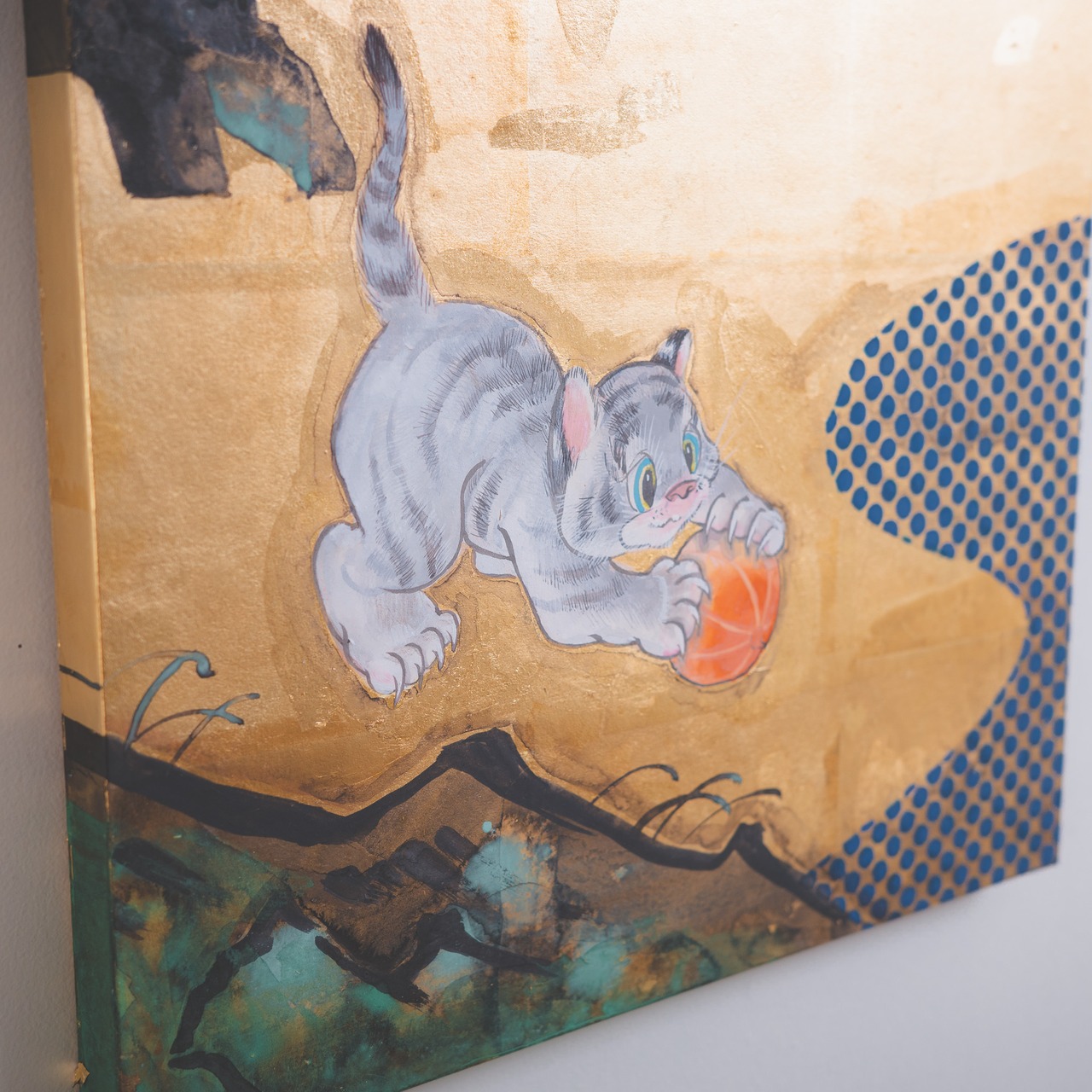 素材:鳥の子紙、洋金箔、墨、水干、岩絵具