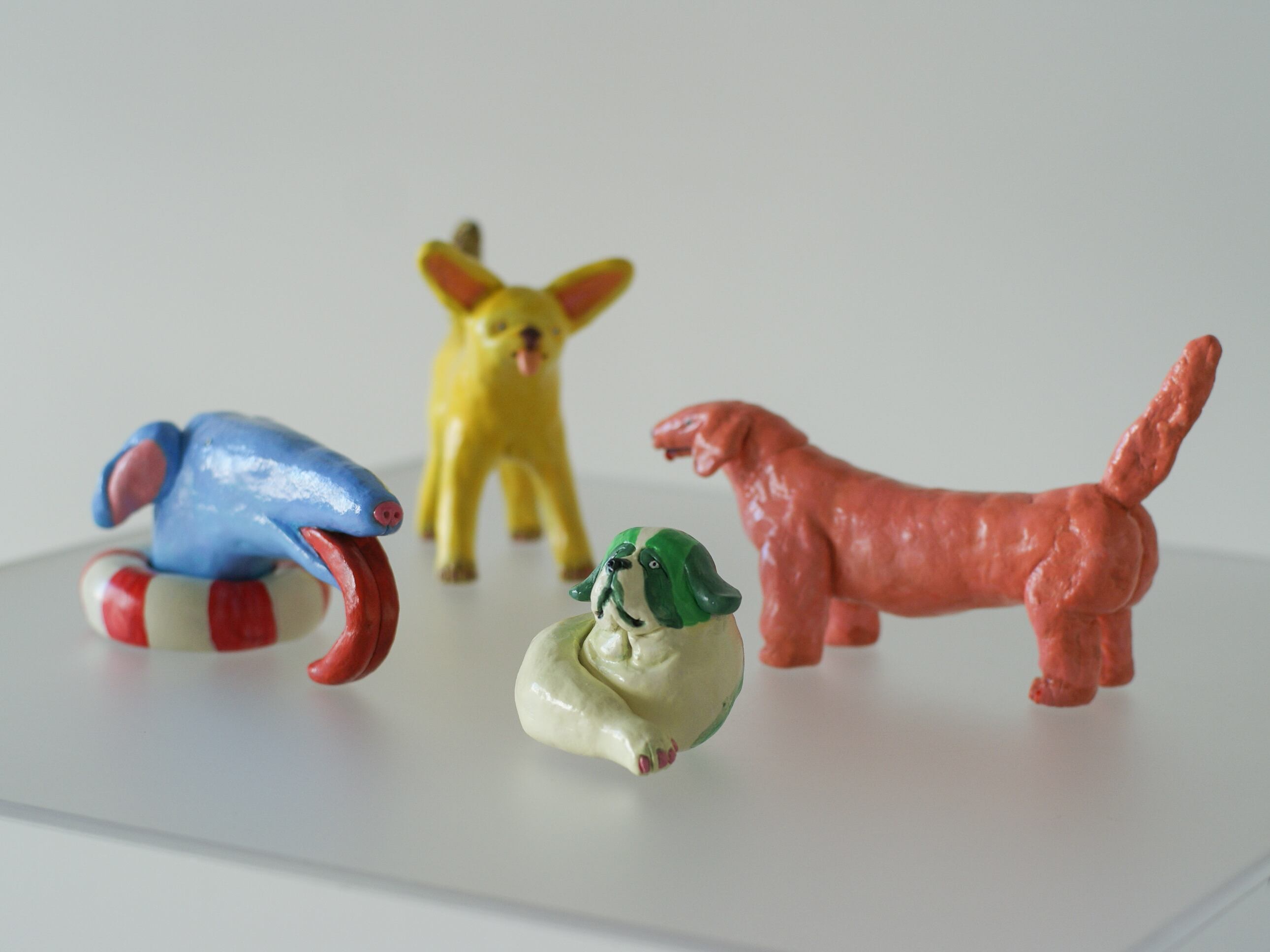私の作品は全てが自刻像(ポートレート)です。その時々の自分を犬の姿で表現しています。私は自分の考えや内面性を解像度高く具現化する方法として犬の姿を借りることが最も適していると考えます。様々な自分自身を形にすることは、嘘偽りなく自分自身と対話することです。私は私自身と向き合う際に、犬のように情熱的で自由で愛情深くありたいと考えています。私の作品は、私を見つめる私自身でもあります。傍にいたり、離れていたりしながら、私を見守っている存在を作り続けているのかもしれません。